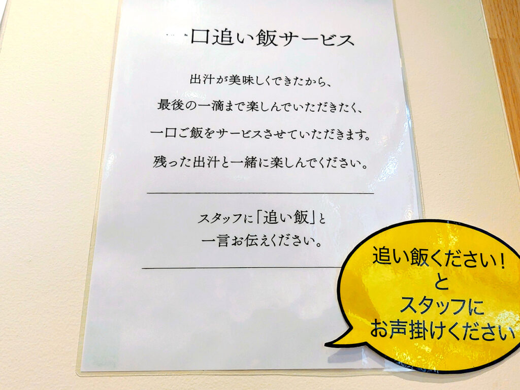 嬉しい〈一口追い飯サービス〉もあります。