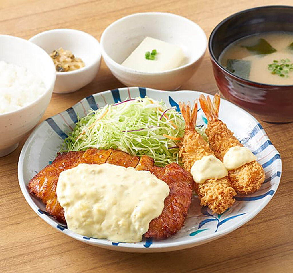 焼き魚、チキン南蛮、肉野菜炒めなど約40種類の定食メニューがそろい、季節限定が定期的に登場する飽きない構成が魅力。ごはん・だし・漬物がおかわり自由なのも特徴です。