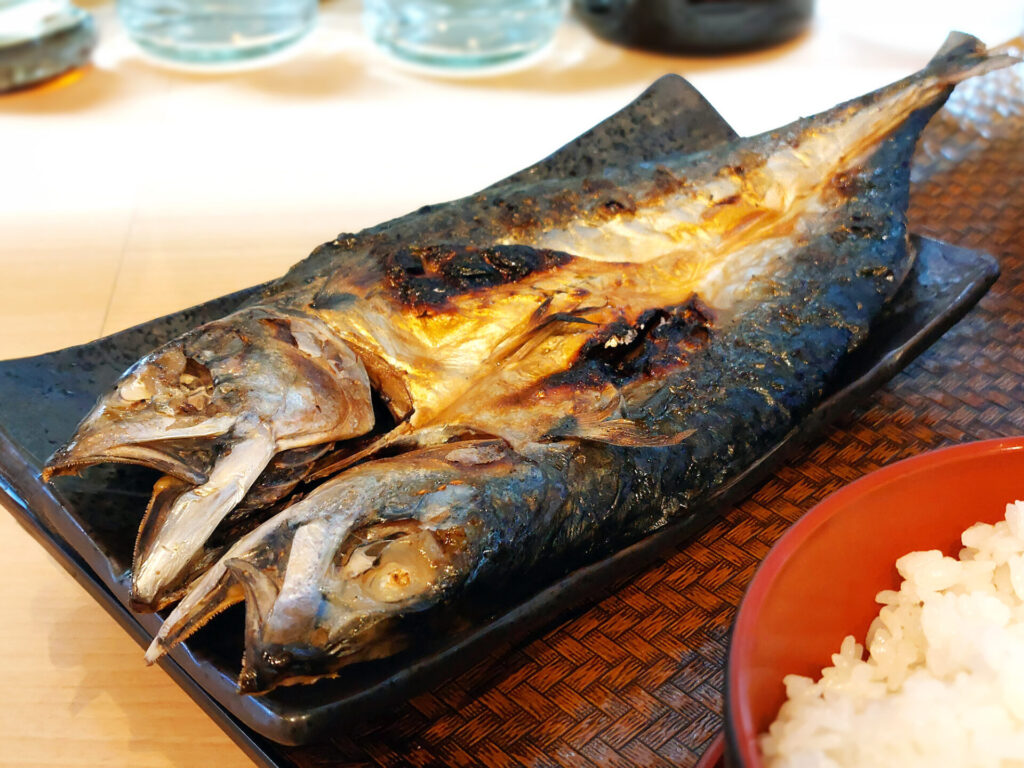 金華さばは、皮パリッ香ばしく身はふっくらした仕上がり。脂のりがよく噛むほどに旨みが広がって、何もつけなくても美味しい!サッパリした大根おろしとも相性抜群ですね。