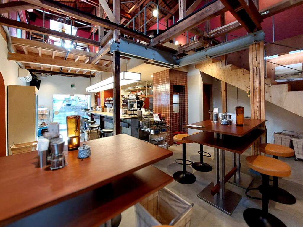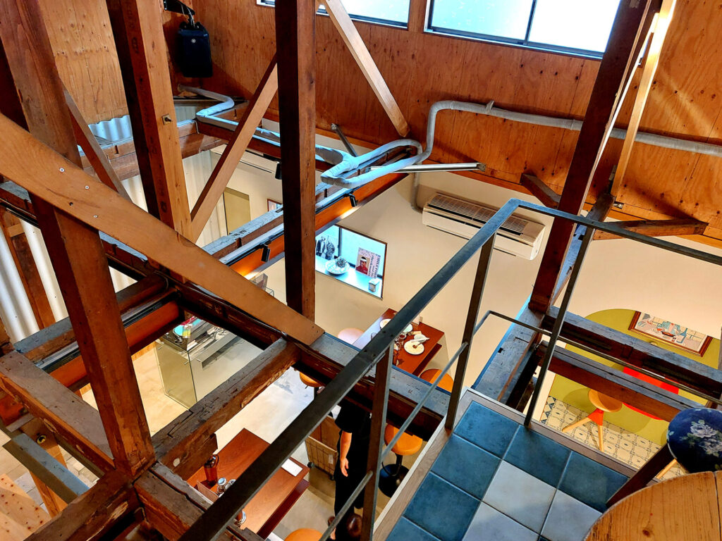 店舗奥は吹き抜けになっていて、梁や柱、鉄骨がむき出しのちょっとカオスな雰囲気がハイセンス!