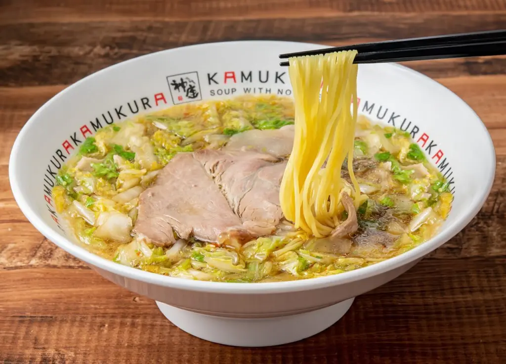 どうとんぼり神座(かむくら)は、1986年に大阪道頓堀で創業した人気ラーメンチェーン。看板メニューは、フレンチ出身の創業者が1年半かけて完成させた秘伝スープに、たっぷりの白菜と豚バラ肉を合わせた「おいしいラーメン」です。