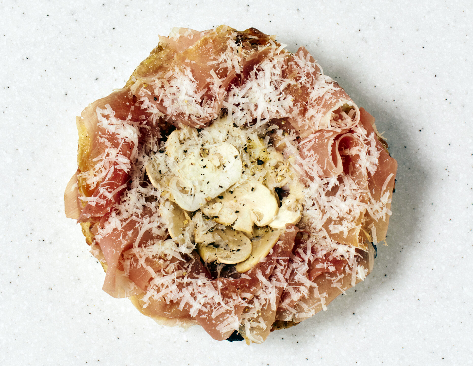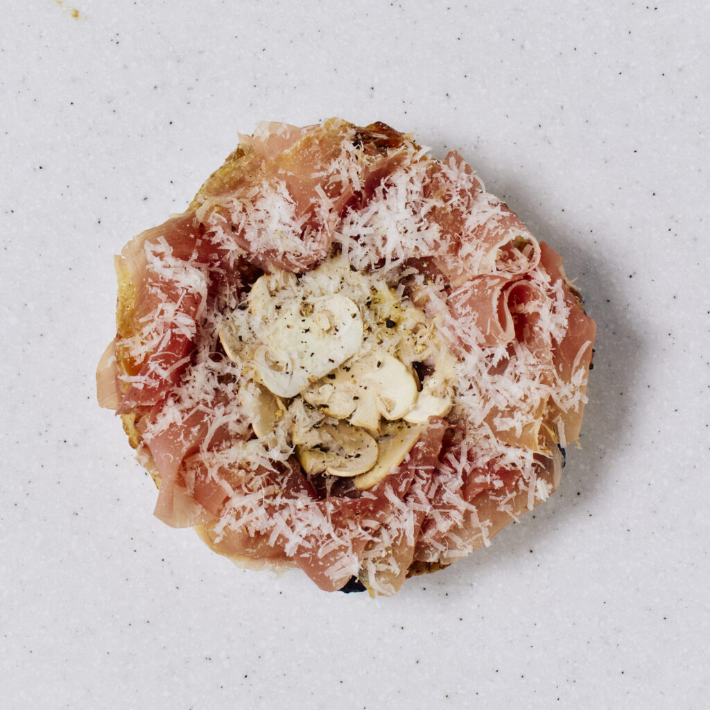 自家製生ハムの塩気とキノコの香りが絶妙なシグネチャーピザ。 - 燻製マルゲリータ…900円