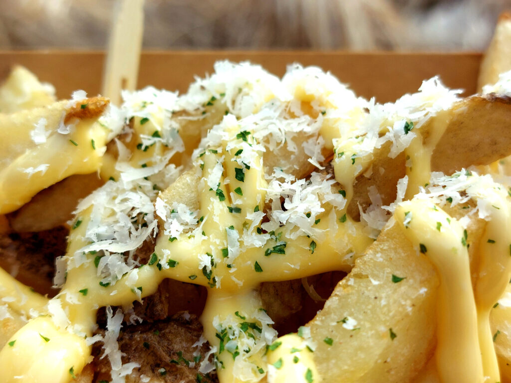 今回は店頭看板の写真で一目惚れした組み合わせをオーダー。トリュフ味のLサイズ(800円)でマヨネーズ(100円)とパルメジャーノチーズ(250円)をオーダーしてみました。