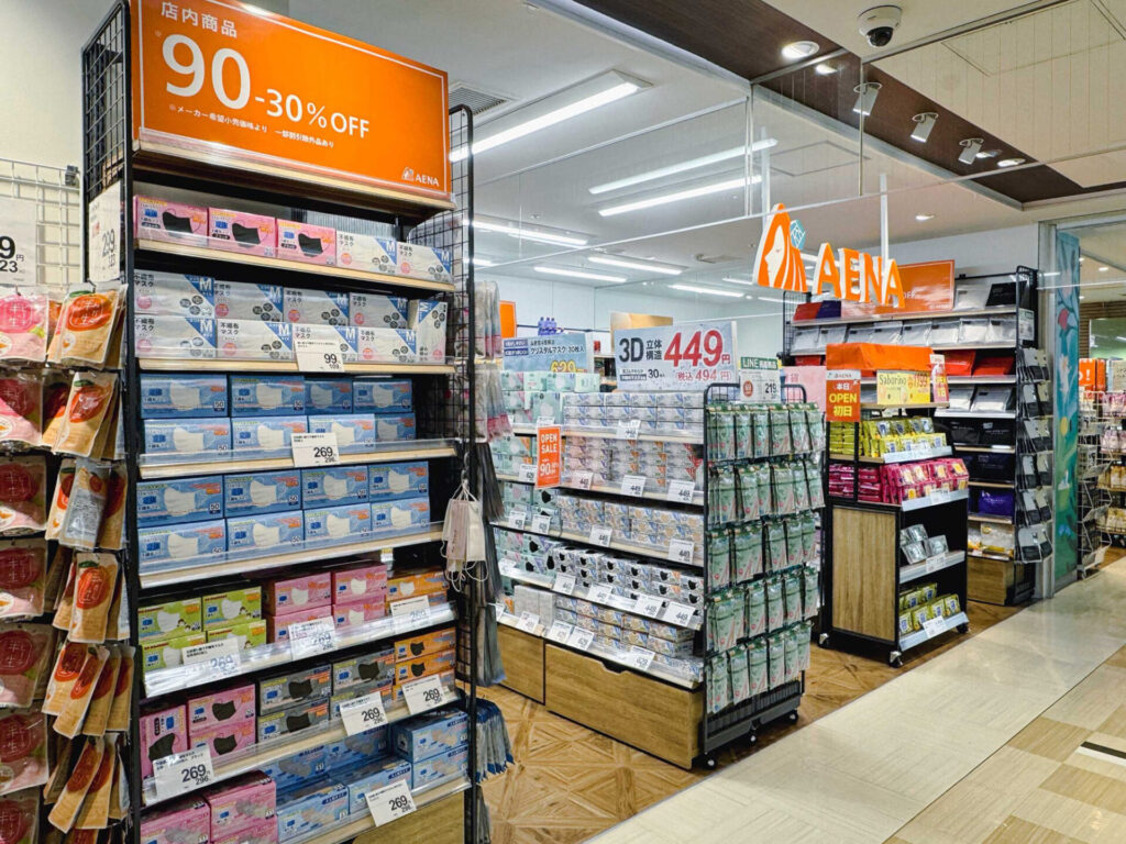アエナは、メーカーが抱える余剰在庫(廃盤商品・過剰生産品・パッケージ切り替え前の商品など)を仕入れ、メーカー希望小売価格の30〜90%OFFで提供するオフプライスストア。化粧品やスキンケア、健康食品、生活雑貨まで幅広いラインナップが特徴です。