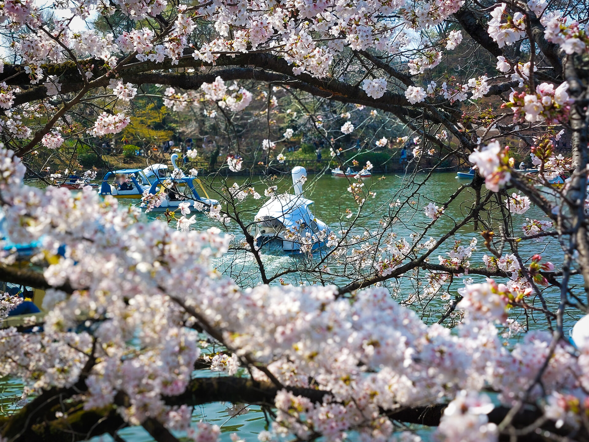井の頭池を囲むように植えられたソメイヨシノが一斉に咲き誇りプチ桃源郷のような美しさ。池の周りをぐるっと歩きながらお花見できるのもいいですね。