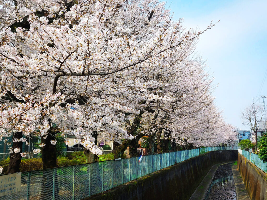 久我山駅から三鷹台方面へかけて川沿いに立派な桜並木が続きます。