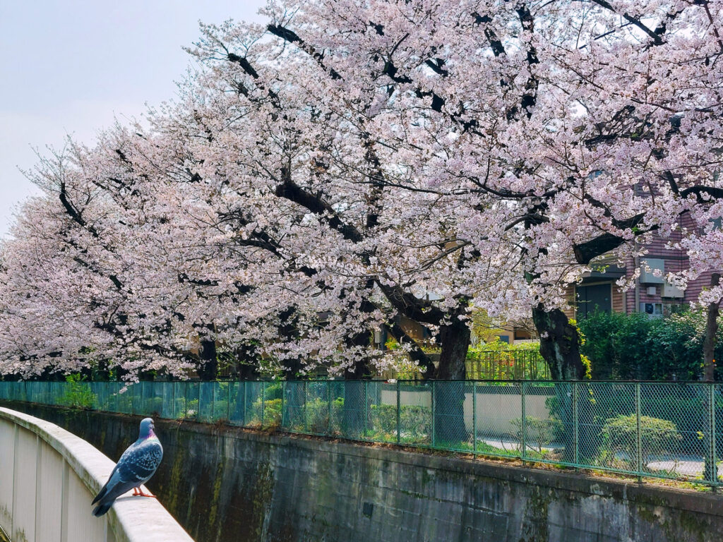 久我山駅から6分ほどの緑橋は両岸の桜並木が見えるスポット。川のカーブが奥行きを演出していて撮影にもおすすめです。
