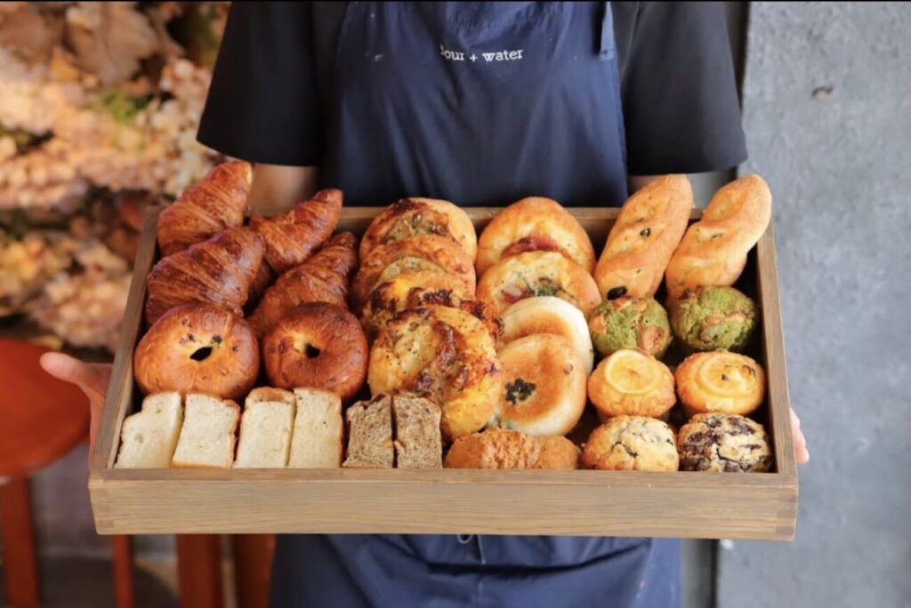 flour+water(フラワーアンドウォーター)は、中目黒に本店を構える人気ベーカリーカフェ&イタリアンバル。テレビや雑誌などメディアにも登場する話題店で、料理人が手掛けるパン屋をコンセプトに、旬の食材に使ったこだわりのパンを提供しています。